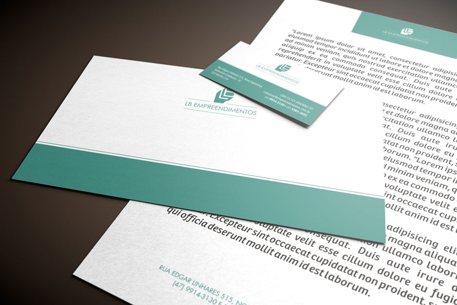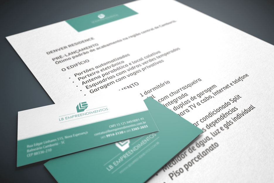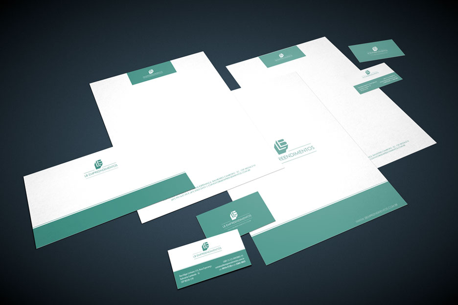 LB EMPREENDIMENTOS. Criação de logotipo e sua posterior aplicação em materiais gráficos, como cartão de visita, pastas, envelopes. Criação de logotipos para empreendimentos diversos e material promocional, folder e brochuras.