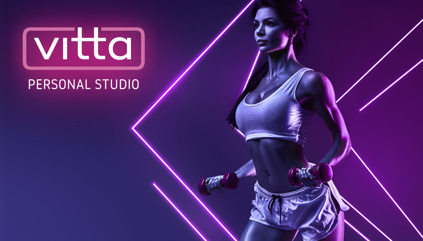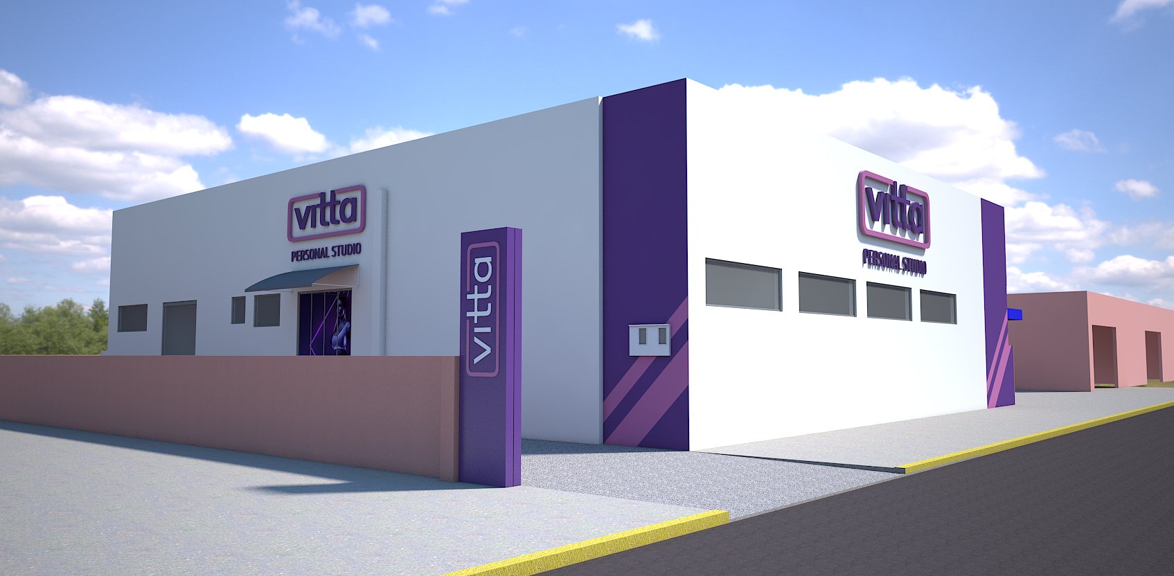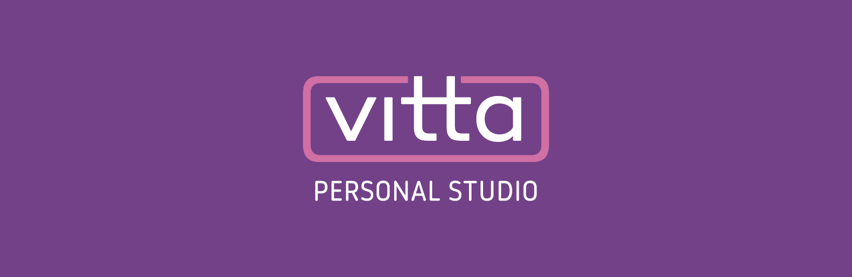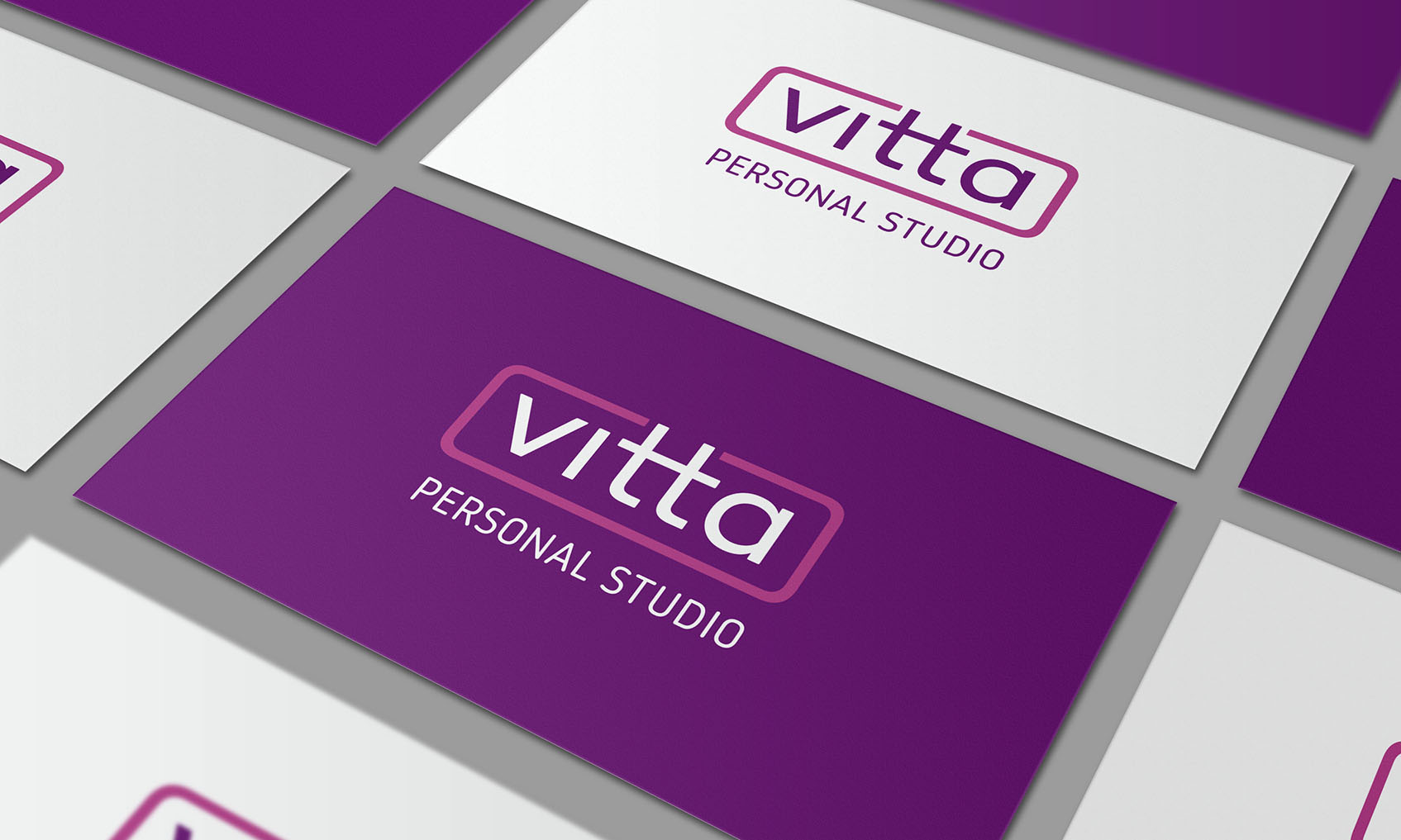 VITTA Personal Studio. Criação de logotipo e sua aplicação em materiais impressos, camisetas, sinalização externa (fachada).