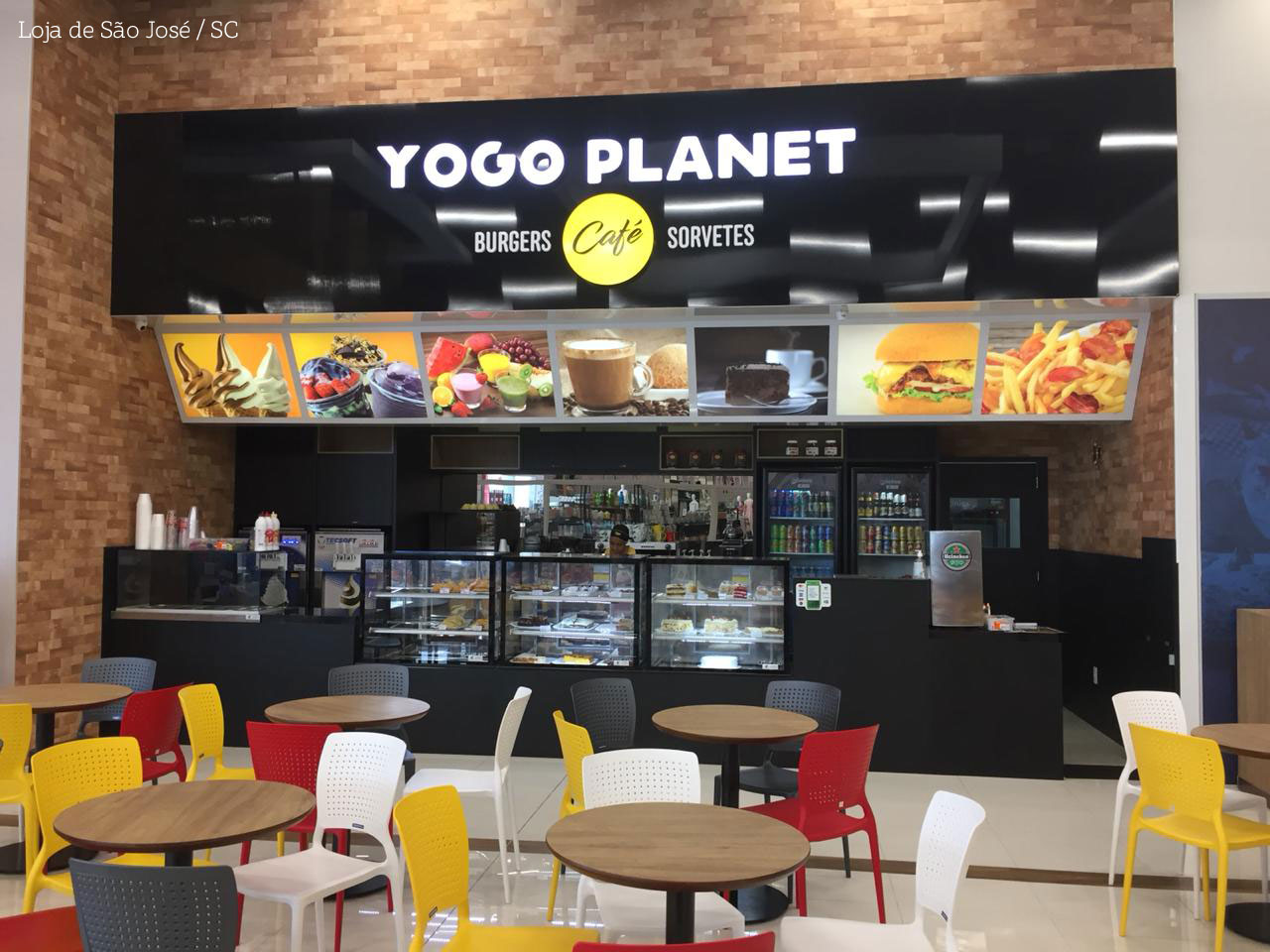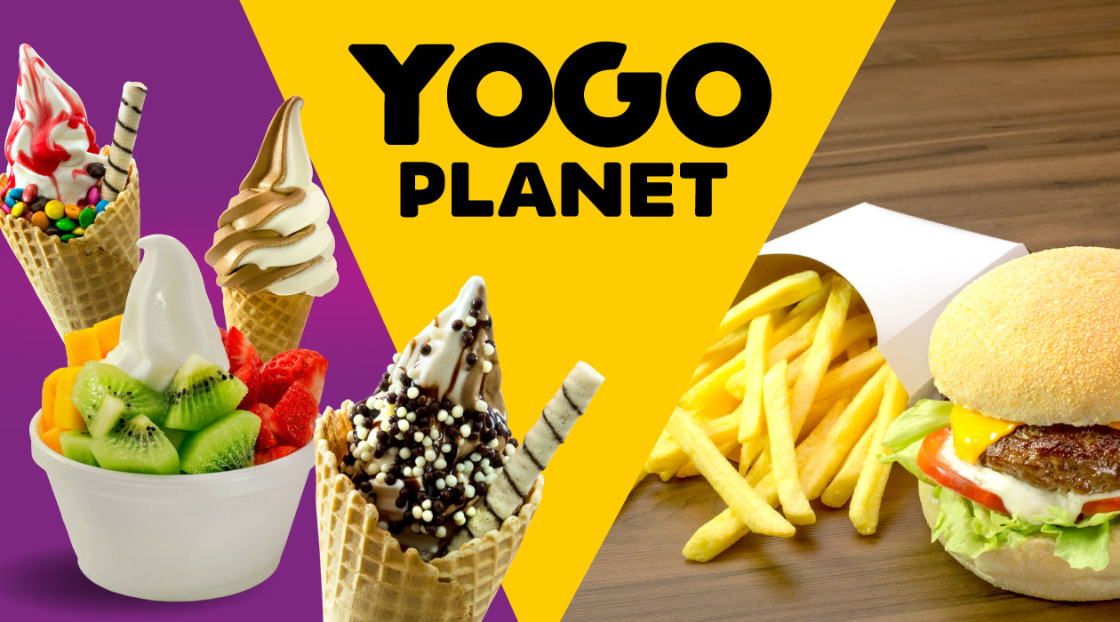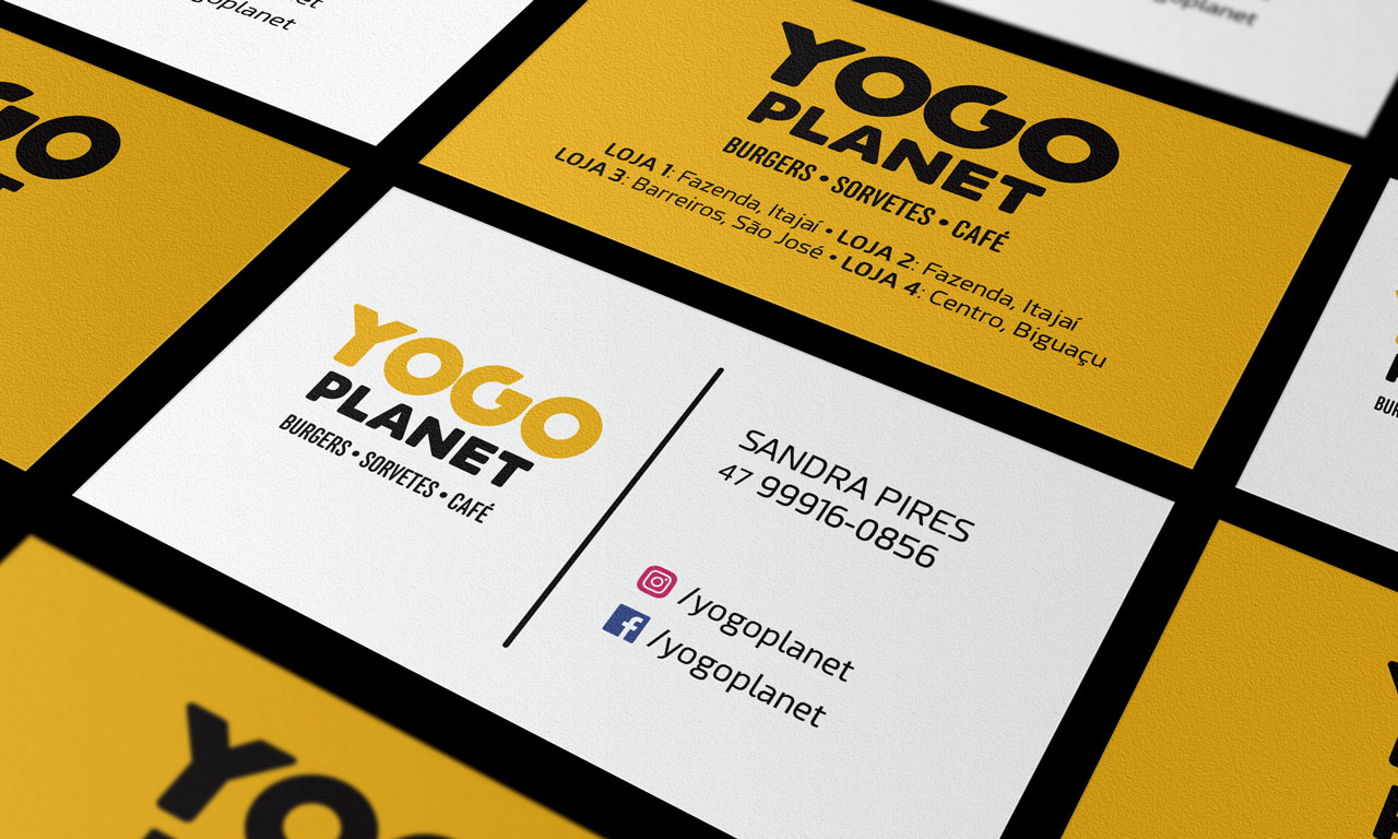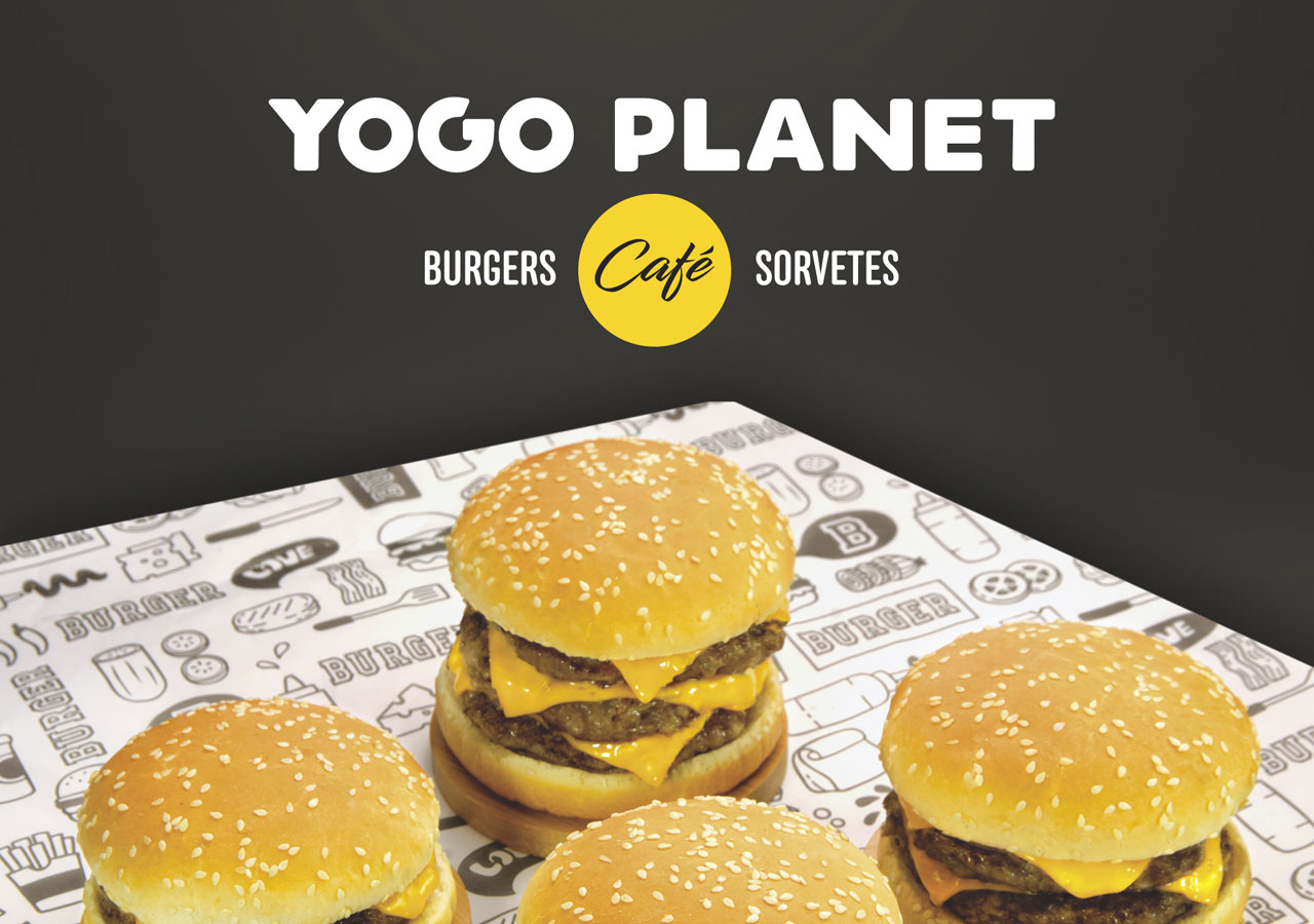 Rede da YOGO PLANET - Burgers, Sorvetes e Café, com diversas lojas em Santa Catarina. Fizemos o redesenho do logotipo, criação de fachada padronizada, incluindo layout da sinalização e projeto dos móveis e instalações internas. Materiais impressos: cardápios, banners promocionais, padronização de embalagens descartáveis, uniformes, cartões de visitas e etiquetas.